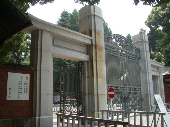 東大,日本的第一大學,每個日本人的夢想,來了東京幾次都沒有去參觀一下怎麼行呢!!! 一早我們便搭丸之內線到本鄉三丁目,出了車站向左邊直走,便到達東大最有名的赤門。赤門之所以可以成為東大的特色就在於它的歷史悠久,一到那邊就看到幾位老人家在素描,不免俗的我們在這照了幾張相片,一進赤門的左邊就是紀念品中心,賣一些紀念筆馬克杯的東西,不過如果你是要自己留念的,就不要在這買,因為這邊的東西比較高檔也貴,可以把錢留到他們中央食堂旁的福利社買。這地方可以拿到整個東大的彩色地圖,接著我們走到大門,跟赤門比起來真的是遜色許多,難怪大家都以赤門為東大的地標。
